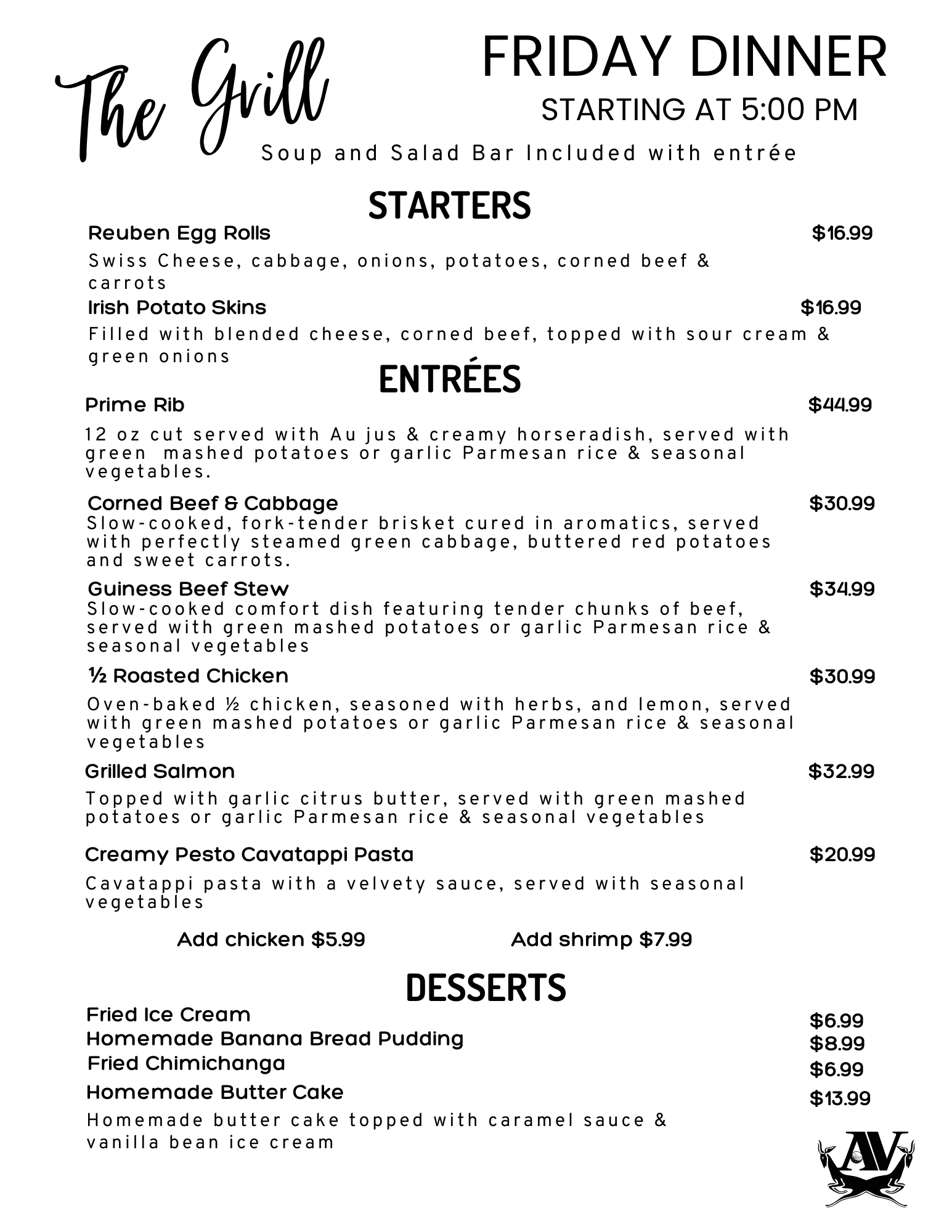 Friday Night Dinner Service 5PM – 8PM